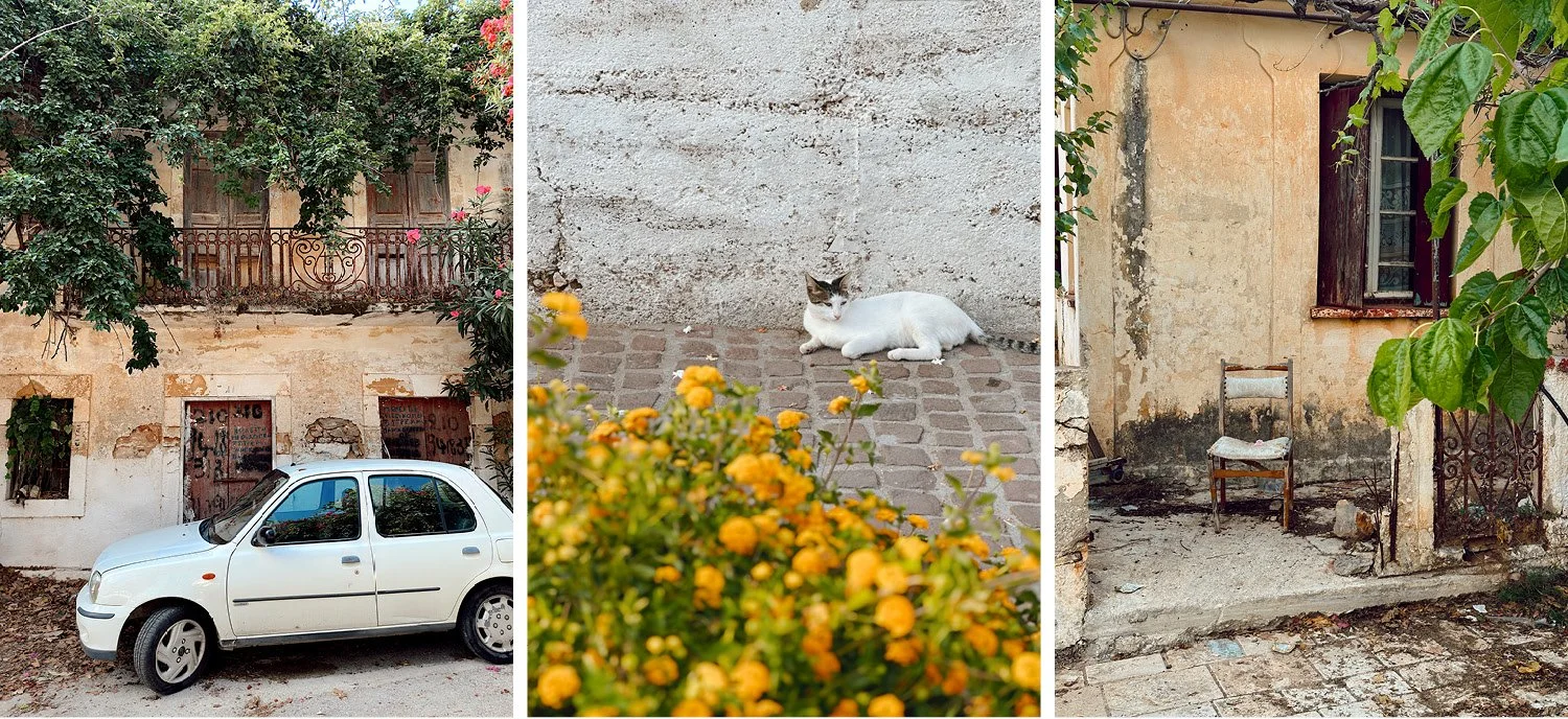 The village of Assos is secluded, peaceful, and surrounded by nature. Boxy buildings line the narrow streets, painted in every pastel shade imaginable—some with pops of emerald on the window shutters or cobalt blue, and others with a vivid ochre front door. As you walk around, lush foliage and bougainvillea cascade over narrow alleyways and spill from balconies high above. Inspiration is at every turn, particularly in the terracotta vases—I took so many photos of them! Each one sat proudly outside a home, filled with fragrant geraniums.