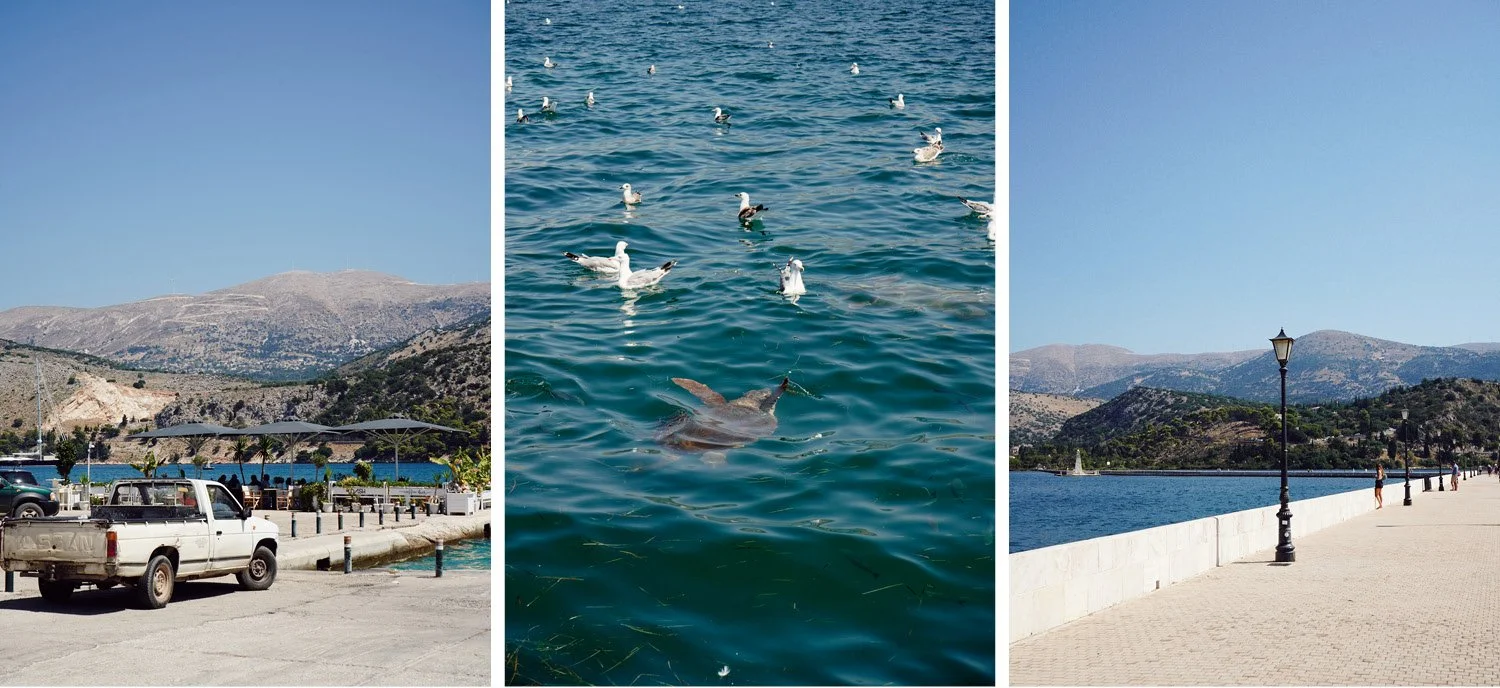 Svoronata is the perfect location for visiting the capital, Argostoli, which is easily accessible via the local bus service. Once there, we walked along the De Bosset Bridge, which feels more like a footpath because it’s so low, almost at sea level, and lined with quaint, traditional lamp posts.